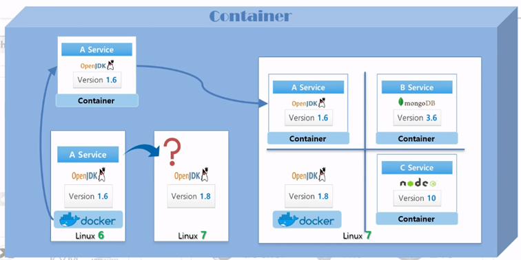 - 예를 들어 리눅스는 버전이 있는데 버전에 따라 기본적으로 설치되는 라이브러리가 다름