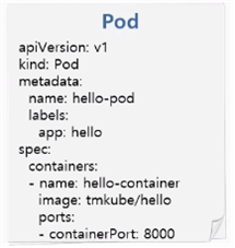 버전과, Pod를 만들 것이라는 종류 명시