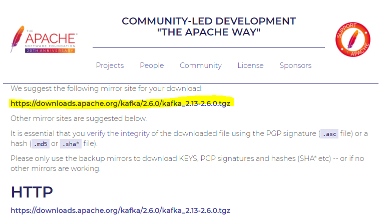 Kafka 공식 홈페이지에서 Kafka를 다운로드