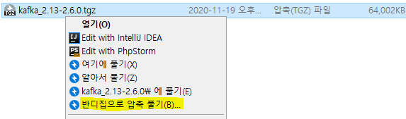 필자는 C:\dev\kafka_2.13-2.6.0 경로로 지정해주었다.