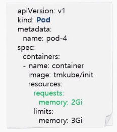 limits는 최대 허용 메모리가 3Gi라는 내용임.