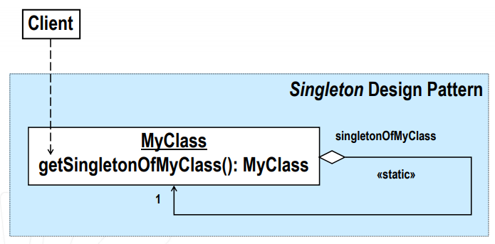 소프트웨어 디자인 패턴에서 싱글턴 패턴(Singleton pattern)을 따르는 클래스는, 생성자가 여러 차례 호출되더라도 실제로 생성되는 객체는 하나이고 최초 생성 이후에 호출된 생성자는 최초의 생성자가 생성한 객체를 리턴한다. 주로 공통된 객체를 여러 개 생성해서 사용하는 DBCP(DataBase Connection Pool)와 같은 상황에서 많이 사용된다고 한다.