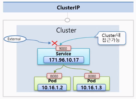 - ClusterIP는 외부에서 접근할 수 없음
