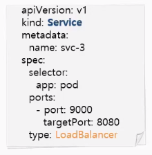 (기본값이 ClusterIP임!) - port: 9000 는 9000번 포트로 들어올 경우 target의 8080포트로 연결된다는 내용