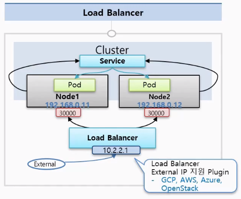 Load Balancer 타입의 Service는 앞에서 다룬 NodePort의 성격을 그대로 가지고있다.