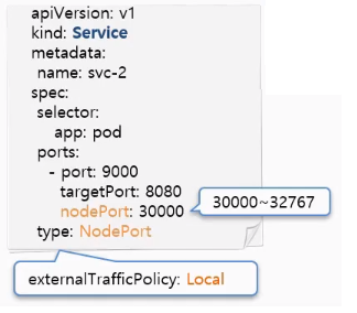 - pod가 있는 node에만 Port가 할당되는 것이 아니고 모든 node에 Port가 만들어진다.