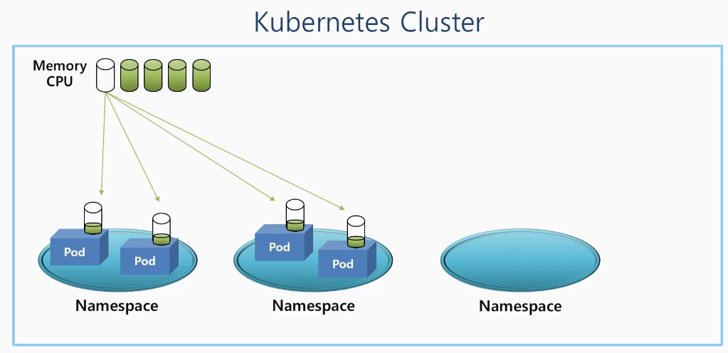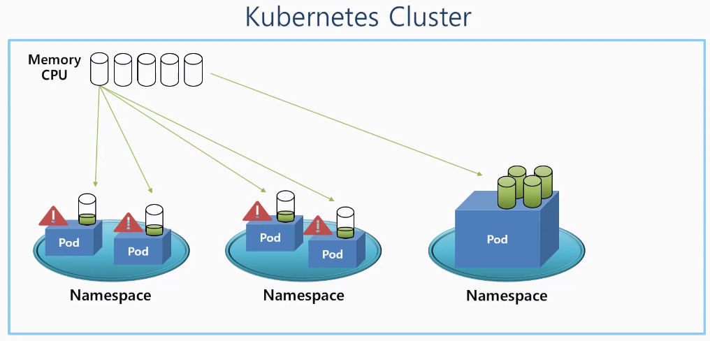 여기서 하나의 Namespace안에 있는 Pod가 Cluster에 남은 자원을 모두 사용해버리면
