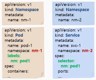 두 Object는 namespace이름이 다르기 때문에(nm-1, nm-2) labels와 selector의 값이 같아도 연결되지 않는다!