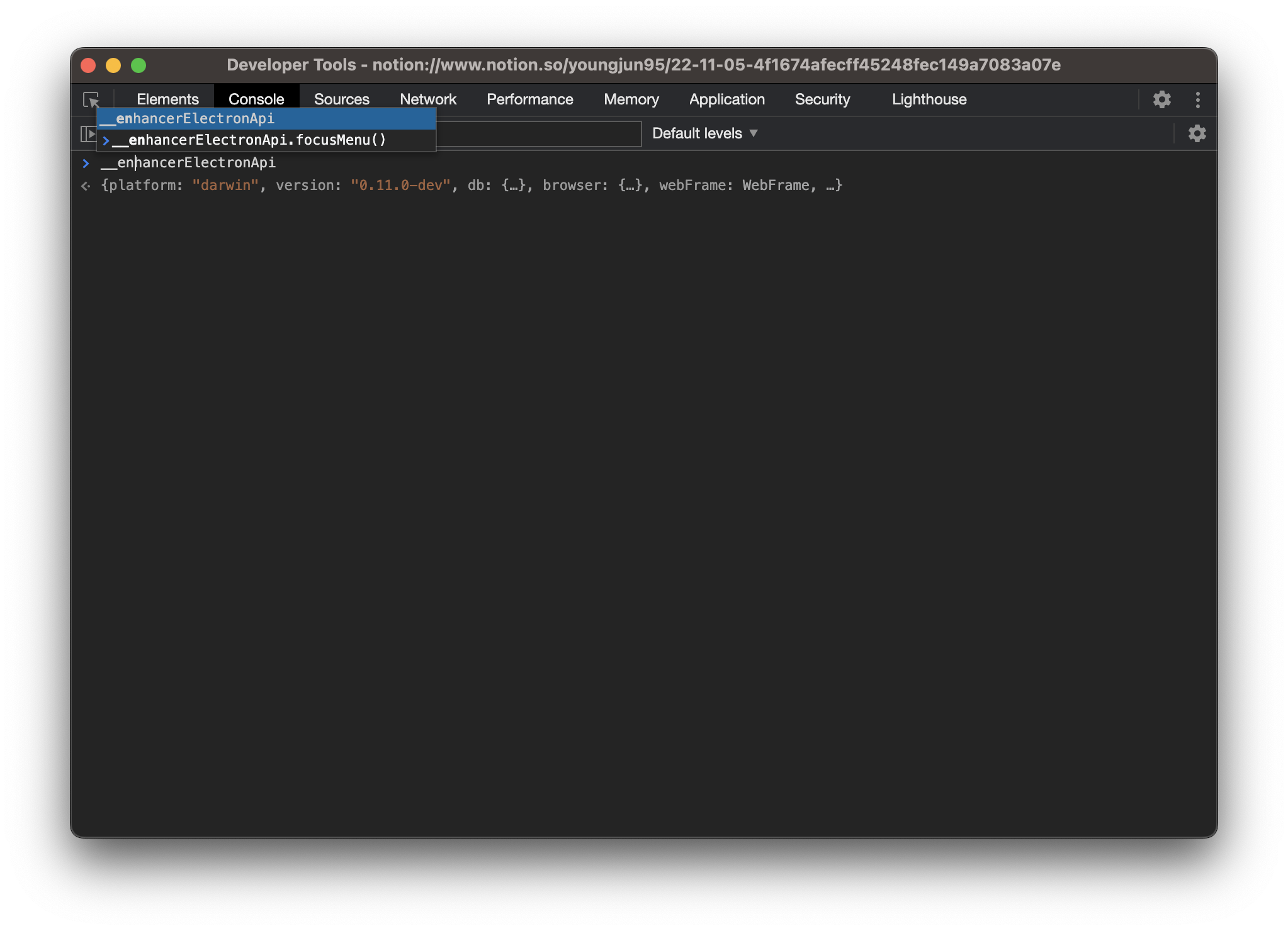 - Console tap에서 __enhancerElectronApi.focusMenu() 입력