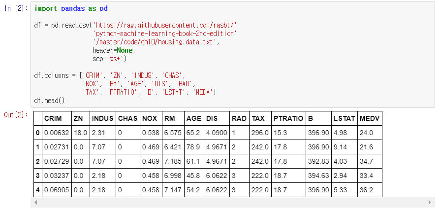10.2.1 데이터프레임으로 주택 데이터셋 읽기