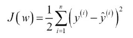 아달린의 비용 함수는 제곱 오차합으로 OLS에서 사용할 비용 함수와 같다!