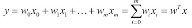 여기서 w0는 y축의 절편이고 x0=1 이다.