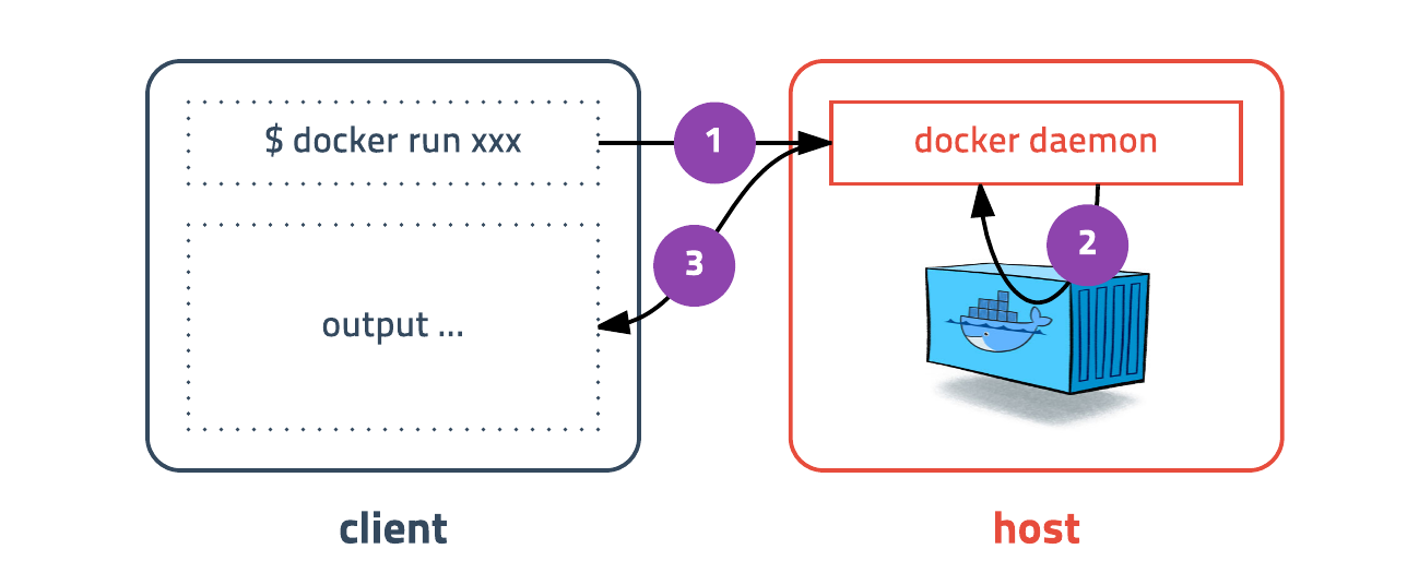 버전 정보가 클라이언트와 서버로 나뉘어져 있는데, 도커는 하나의 실행 파일이지만 실제로 클라이언트와 서버역할을 각각 할 수 있다! 도커 커맨드를 입력하면 도커 클라이언트가 도커 서버로 명령을 전송하고 결과를 받아 터미널에 출력해 준다.
