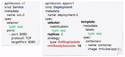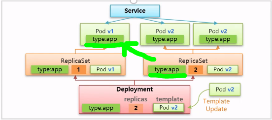 - 하나의 새로운 v2 버전 pod 파드는 똑같은 label이므로 Service에 연결된다.
