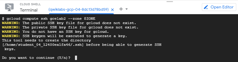 gcloud compute ssh를 사용하여 가상 머신에 SSH를 사용해보자.