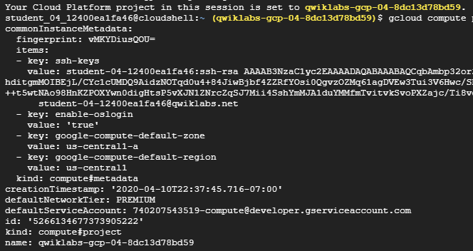 뒤에 나오는 실습은 지금 설정된 영역(google-compute-default-zone)을 사용한다.