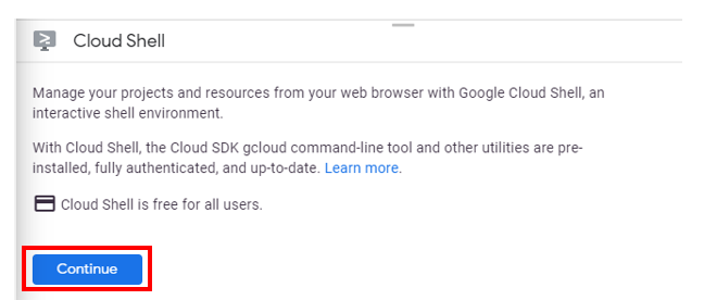 - Cloud SDK gcloud와 필요한 기타 유틸리티는 Cloud Shell에 사전 설치되어 있으므로 간단하게 시작하고 실행할 수 있다.