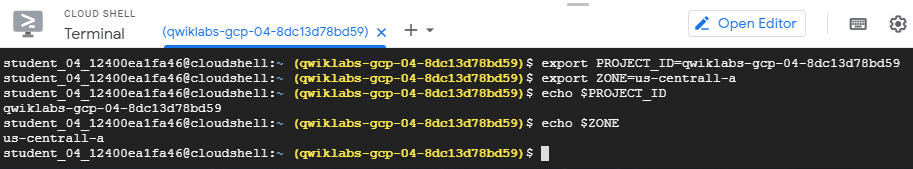 <your_project_id>를 대체할 값은 Console의 홈페이지에서 확인하거나 이 실습을 시작한 Qwiklabs 탭에서 프로젝트 ID를 사용하여 찾을 수 있다.