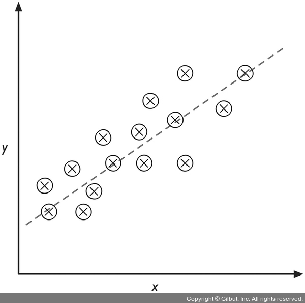입력 x와 타깃 y가 주어지면 샘플과 직선 사이 거리가 최소가 되는 직선을 그을 수 있습니다. 일반적으로 평균 제곱 거리를 사용합니다. 이렇게 데이터에서 학습한 직선의 기울기와 절편(intercept)을 사용하여 새로운 데이터의 출력 값을 예측합니다.