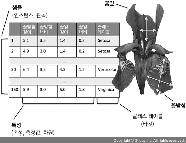붓꽃 예시를 통해 책에서 사용할 기본 용어를 알아보겠습니다.
