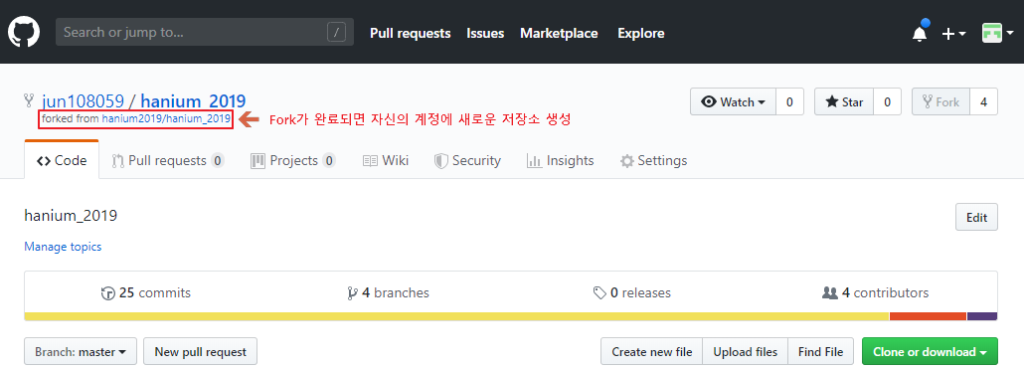 1. 자신의 PC에 Fork 한 Repository를 Clone 한다.