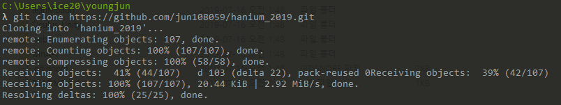 - 위와 같은 방법으로 clone or download 버튼을 눌러 표시되는 URL을 복사한다.