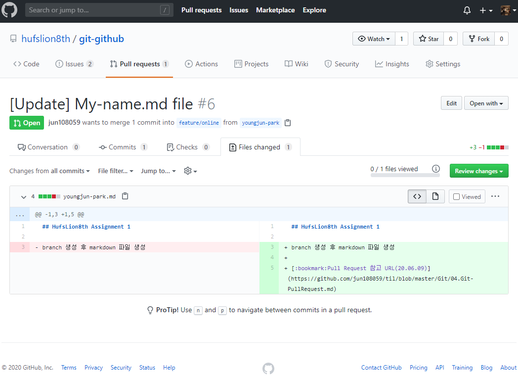 (6) 2020/04/20 - [Git] - Git - Pull Request 활용하기