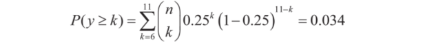 예를 들어 에러율이 0.25인 분류기 11개로 구성된 앙상블의 에러율은 다음과 같다.