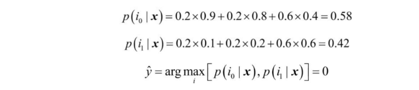 앙상블 Cj( j ∈ { 1, 2, 3 }을 가정하면 어떤 샘플 x에 대한 분류기 Cj는 다음과 같은 클래스 소속 확률을 반환한다.