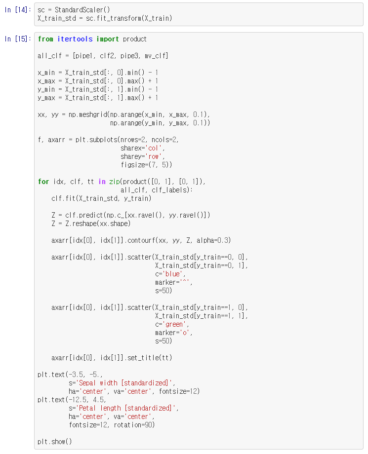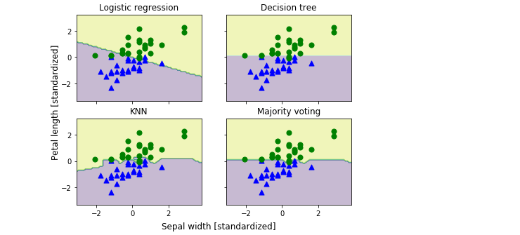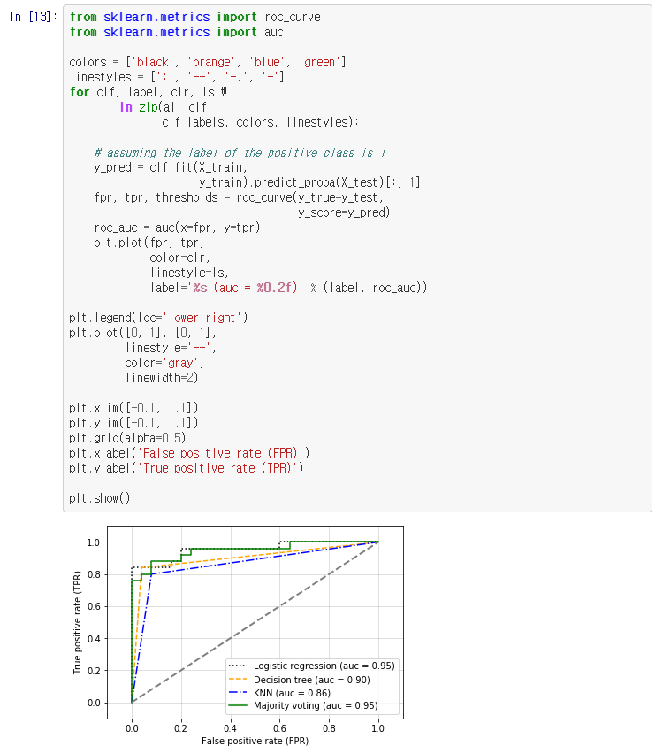이제 이전 절에서 MajorityVoteClassifier 클래스를 사용한다.