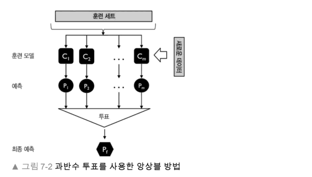 그림 7-2는 과반수 투표를 사용한 일반적인 앙상블 방법이다.