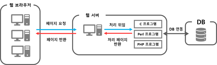 - 서버에서 처리해주기 위해 CGI(Common Gateway Interface)를 도입