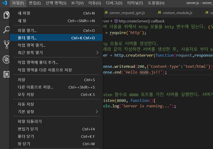VSCode에서 프로젝트로 사용할 특정 폴더를 선택합니다.