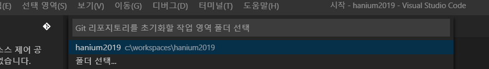 VSCode 메뉴에서 소스제어 메뉴를 선택한 후 Repository 초기화를 선택합니다.