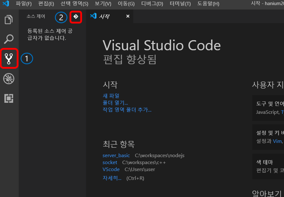 VSCode 소스 제어 메뉴도 아래와 같이 변경된 것을 확인할 수 있습니다.