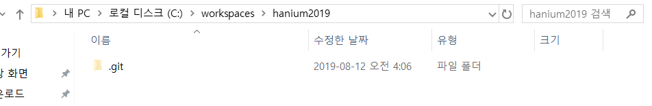 자신의 Window 폴더 경로로 이동하면 .git 폴더가 생성된 것을 확인 할 수 있습니다.