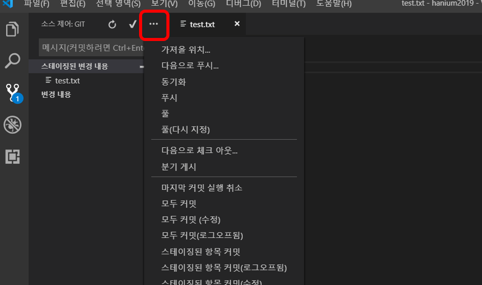 VSCode 소스 제어에서 아래의 메뉴를 선택하면 됩니다.